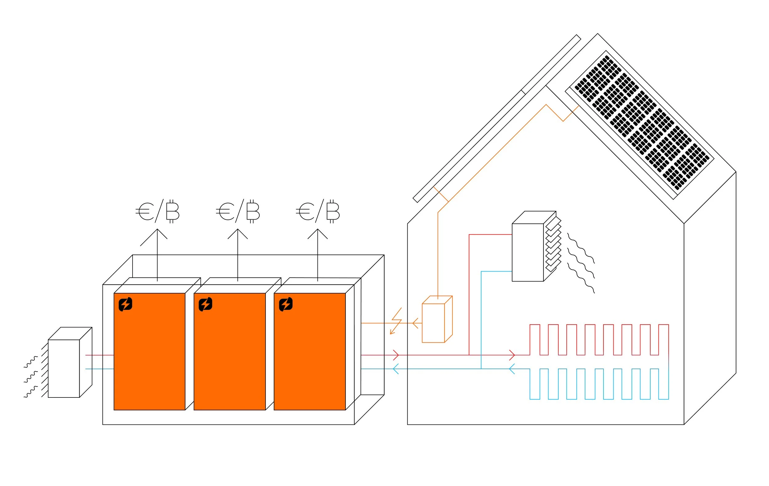 Der EcoHash, ob als Einzelgerät oder in Kombination mehrerer Einheiten, wird als Containerlösung am Gebäude installiert. Die Leistungsaufnahme wird individuell ausgelegt, um den überschüssigen Strom optimal zu verwerten und die Auslastung der Geräte im Container maximal effizient zu gestalten. Optional kann die entstehende Abwärme im Gebäude sinnvoll weitergenutzt werden.